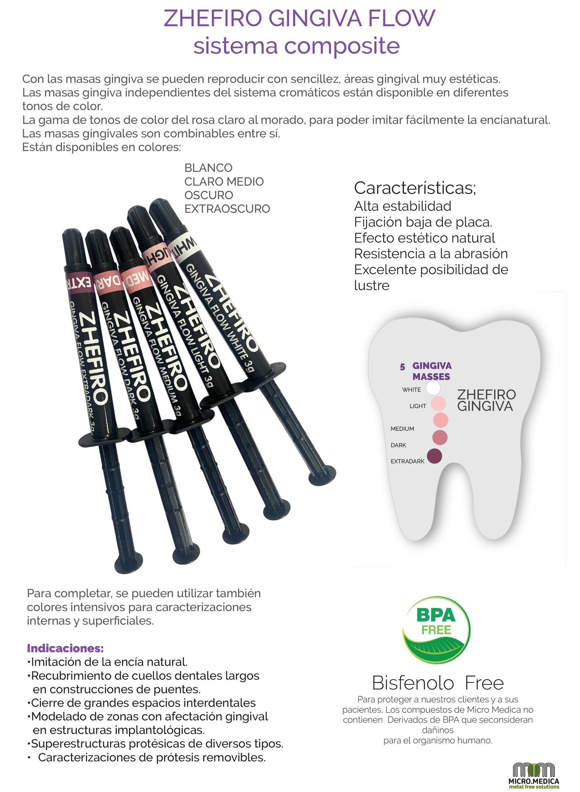 Sistema de composite fluido ZHEFIRO GINGIVA FLOW para restauraciones indirectas