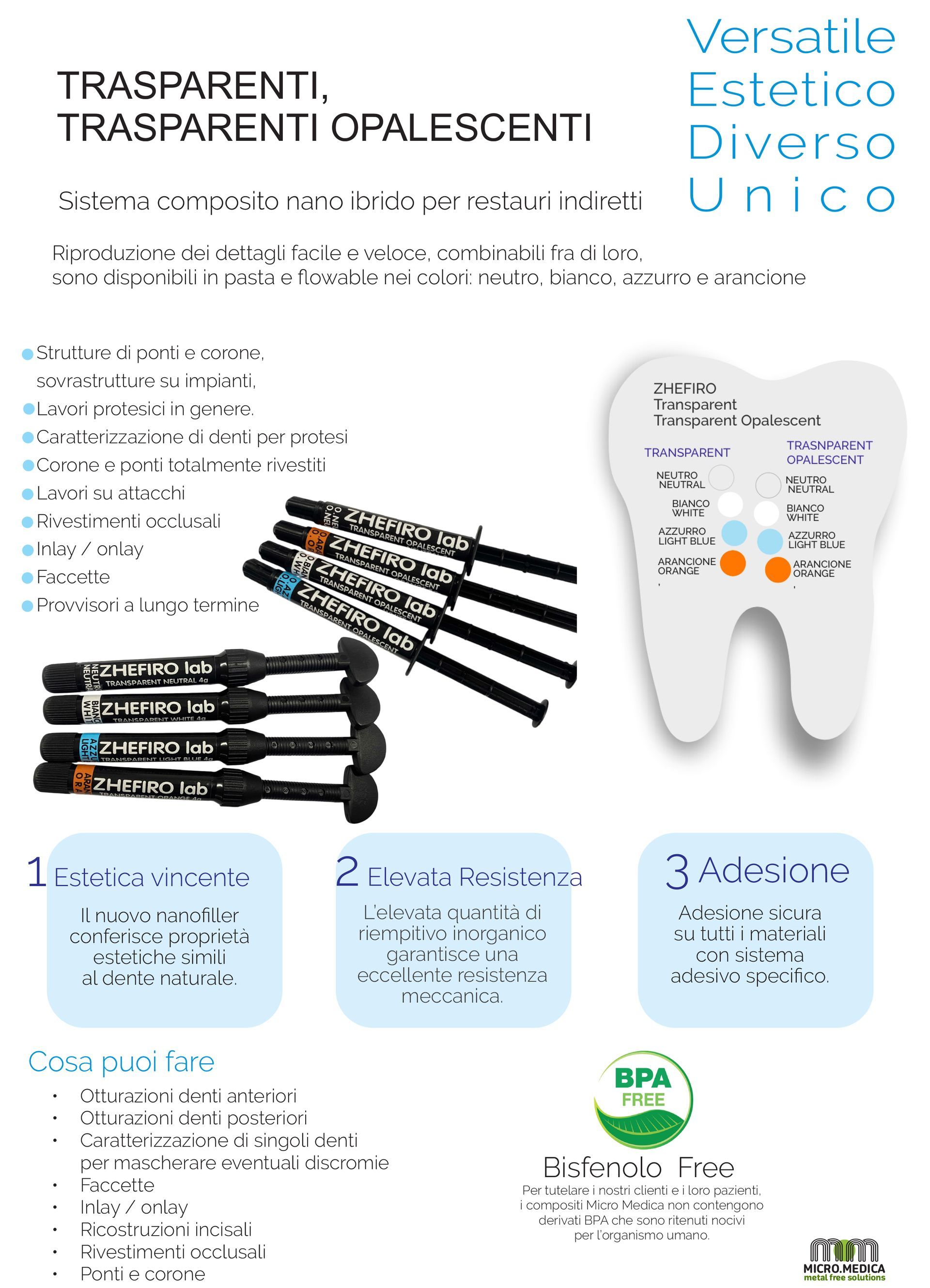 ZHEFIRO lab Trasparenti Opalescenti Sistema composito per restauri indiretti